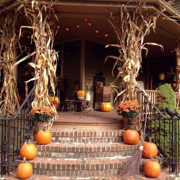 Aeney fall pumpkin garden flag 12.5 x 18 inch vertical double sided, buffalo check plaid fall small garden flag, fall yard outdoor decoration 4.9 out of 5 stars 799 1 offer from $8.99 A welcoming committee of pumpkins, squashes, and dried indian corn is a picturesque way to greet autumn visitors to your home. Creating arrangements with husks, hay and gourds is another great idea to try. Pumpkins, of course, feature heavily in most fall harvest decorations. This is because the pumpkin is an abundant crop during the fall season. Dried corn and corn stalks decor ideas for fall and halloween Corn stalks and fall decorations on the side of a country barn. A fall porch decor with cornstalks, a diy wreath and chevron pillows. I love using corn stalks to decorate my house in the fall. You might want to attach some corn stalks to the columns or pillars on your porch and accent them with a colorful bow and a small pumpkin or scarecrow. 5 out of 5 stars. See more ideas about fall decor, fall thanksgiving, fall halloween. I've enlisted the help of my kids for the project.